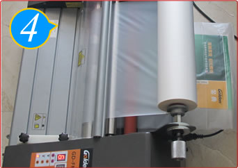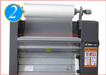 装上覆膜纸;按控制面板调节参数。