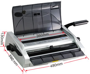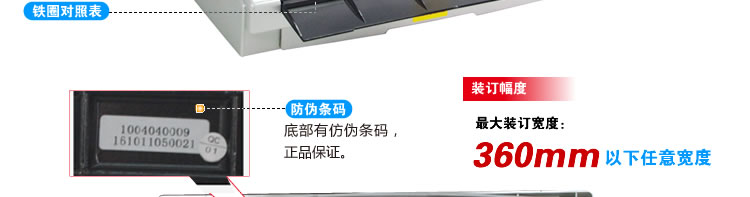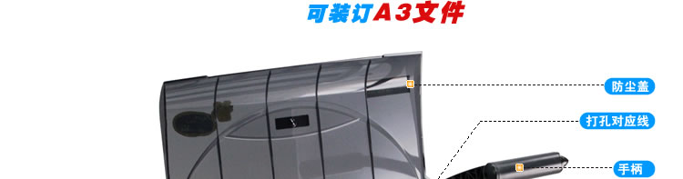 幅面宽达360mm,可装A3文件及360mm以内的各种台历和挂历。可抽刀, 垂直打孔设计,使装订更快捷,使用更方便。刀口锋利,经过2万次打孔测试,切纸整齐。裁刀全部采用优质材料和先进技术,锋利耐用,令切纸整齐,打孔不歪斜、不起毛边。