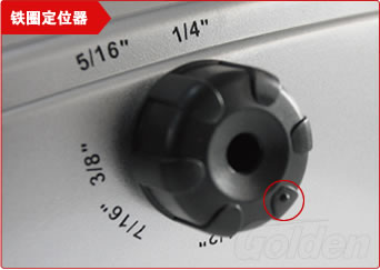 用于调节铁圈尺寸,根据您所使用的铁圈尺寸,将定位器调节至对应的尺寸。