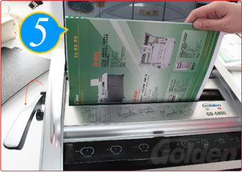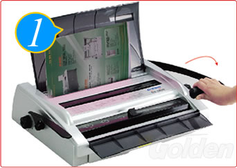 将文件整齐放入打孔槽内,下压打孔手柄,进行打孔。