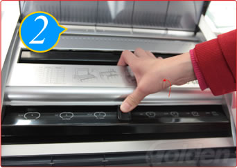 将已插入铁圈的文本开口向下放入铁圈槽内,下压压圈手柄。