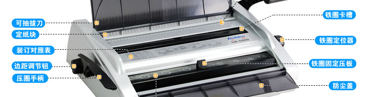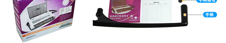 使用者可以根据所要装订文本的需要和个人喜好调节边距,以达到不同的装订效果。 外观摇盖式遮罩,美观大方,轻松防尘。打孔静音,打孔时不会发出巨大声响影响办公环境;操作简单,没有使用过装订机的人也能用它轻松装订出美观的文本。