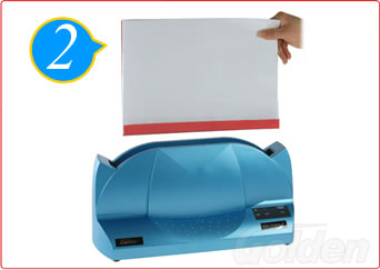 接通电源,将整理好的文件书脊朝下,放入热熔机中。