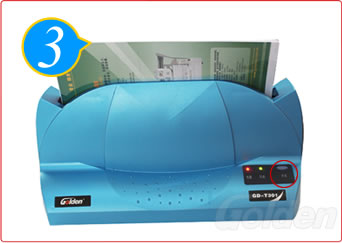 确认文件已放入整齐,按下开关按钮。