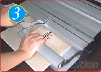 ①将纸张整理整齐,紧靠定位块,将纸张平行送入机器内,顶到位为止。