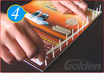 待黄色指示灯亮后,同时按下左右两个压纸杆释放钮,压纸杆被弹出,取出文本,装订完成。装订机小常识