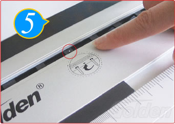 先将打孔定位块置于装订纸规格的刻线处(定位块左端与刻线对齐)。然后锁紧定位螺钉。