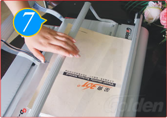 ③双手平稳将打好的纸张拿出,如出现挂纸现象,重复将手柄压下,再往上提到位就可将纸张拿出来。