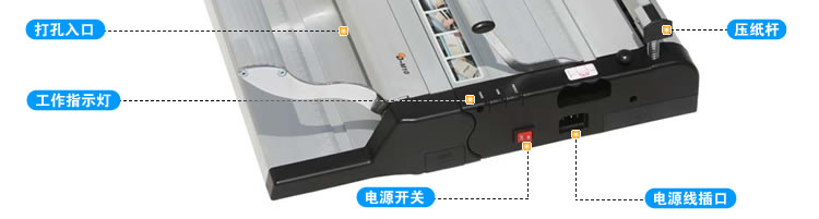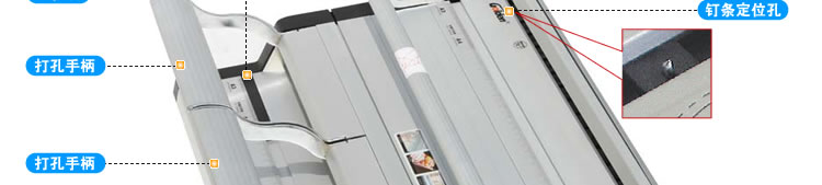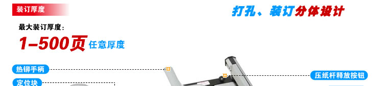 美观、大方、新颖,功能全面,操作简单方便,分体操作(打孔、装订同时进行),独特巧妙的结构设计,保证机器使用持久安全。