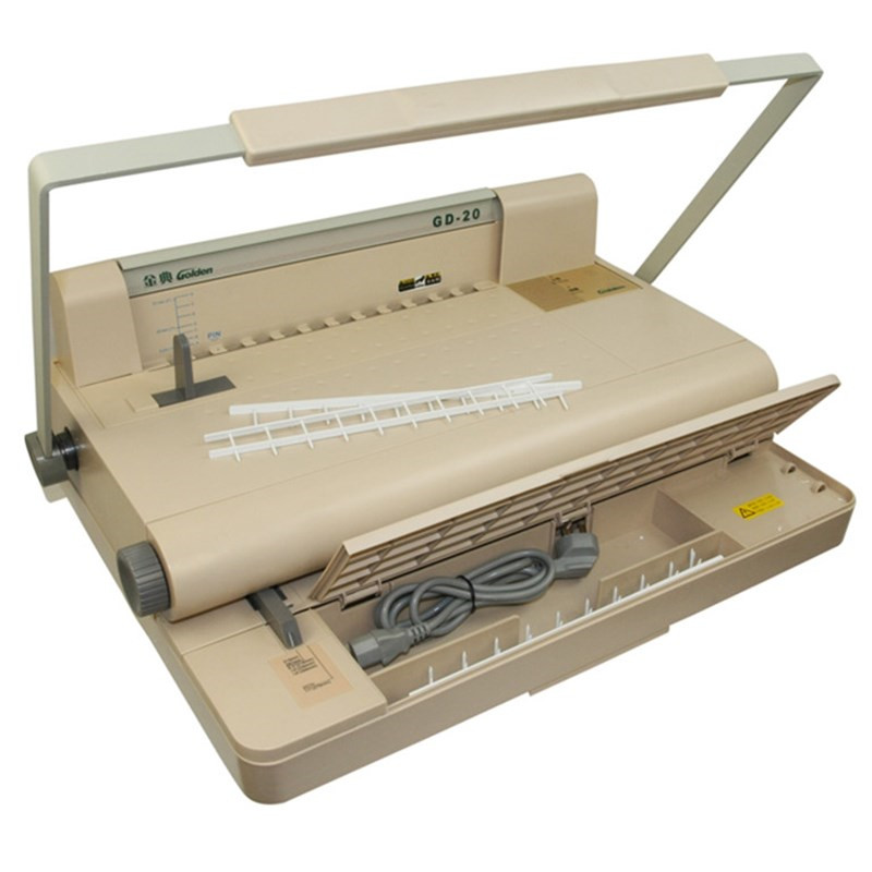 梳式胶圈装订机是所有装订机中,使用成本最低的一种,简单、易拆卸,可多次重复装订使用;比较适用于小型办公室或一般会议文件的装订,以及小型的文印社。一 种装订机有两种装订方法,这也是它的一大特色。梳式装订机为活页式,增删页方便,可实现文本360度翻转,胶圈直径的大小,决定了文本装订厚度,这种装订 方式由于胶圈的尺寸、颜色以及封皮的颜色选择余地较大,故搭配出的效果也千差万别,风格独特,美观大方。