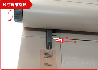 3、纸张边距的调整,原则是:根据拉圈直径大小决定边距尺寸。方法是:用调节螺杆(装在装订机后面)调节刻度来达到边距的目的。规则是:拉圈直径大,纸张边距调大,拉圈直径小,纸张边距调小。