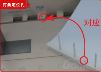 将钉条上的小孔套在机器上的钉条定位孔上。