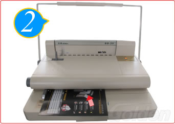 将待装订的文本(已冲好孔)整齐地叠放在面板上,孔位对准相应的钉条孔。