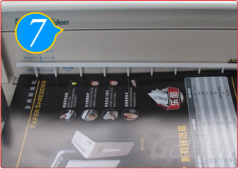①将纸张整理整齐,紧靠定位块,将纸张平行送入机器内,顶到位为止。