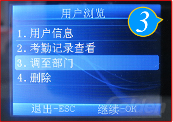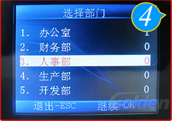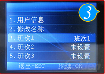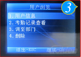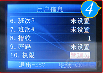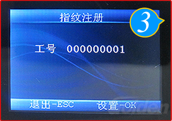 第三步:指纹注册,输入工号跟姓名,然后按提示录入三次指纹,最后按OK键确认成功登记。