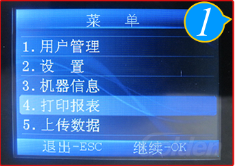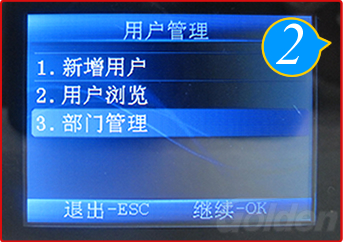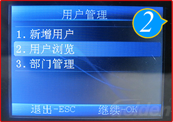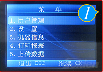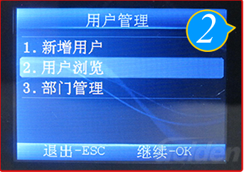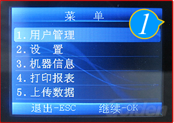 第一步:点MENU进入菜单进入用户管理(点OK键确认)。
