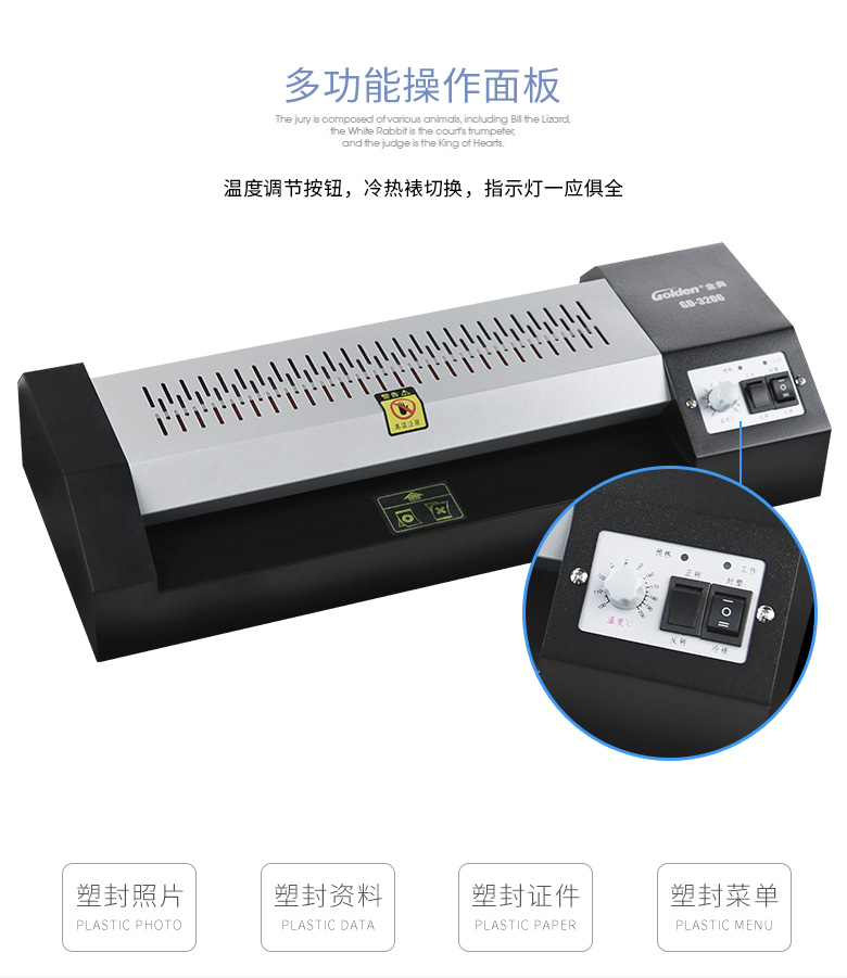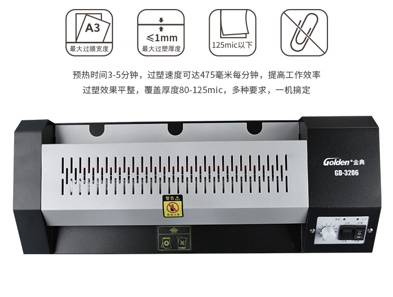 胶装厚度: 金典 铣刀方式: GD-3206 产地: 320mm 最大裁切尺寸(mm): ≦1mm 裁切厚度(mm): 320mm 前台面有效深度: 475mm/min 压纸方式: 3-5min 编程: 4.5/5KG 显示方式: 440*172*85mm 电源: 475*210*125mm 机器尺寸(H*D*W)(mm): AC220V /50Hz 包装尺寸(mm): 400W