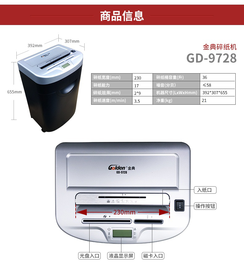 当前位置: 首页 > 办公设备 > 碎纸机 > 金典GD-9728碎纸机