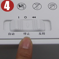 拨动按钮至“反转”档,机器