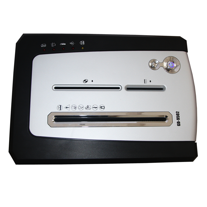 把待碎纸放入进纸口,机器自动启动碎纸。(若为光盘或者卡放入对应光盘、卡入口即可。)