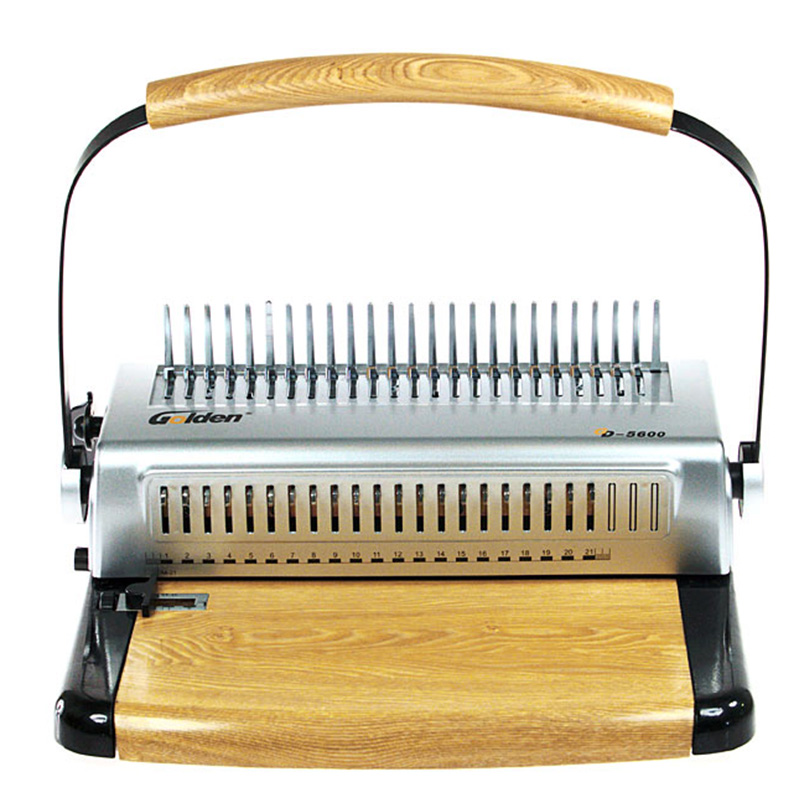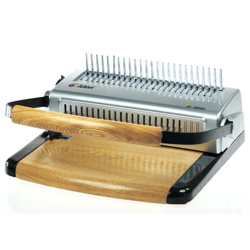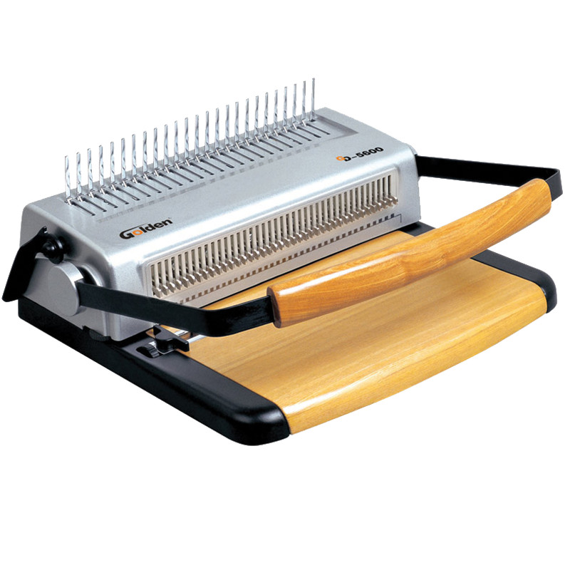 梳式胶圈装订机是所有装订机中,使用成本最低的一种,简单、易拆卸,可多次重复装订使用;比较适用于小型办公室或一般会议文件的装订,以及小型的文印社。一 种装订机有两种装订方法,这也是它的一大特色。梳式装订机为活页式,增删页方便,可实现文本360度翻转,胶圈直径的大小,决定了文本装订厚度,这种装订 方式由于胶圈的尺寸、颜色以及封皮的颜色选择余地较大,故搭配出的效果也千差万别,风格独特,美观大方。