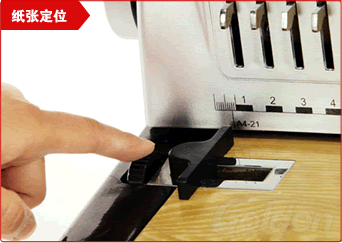 用于调节纸张,根据您所使用的尺寸,将定位器调节至对应的尺寸。