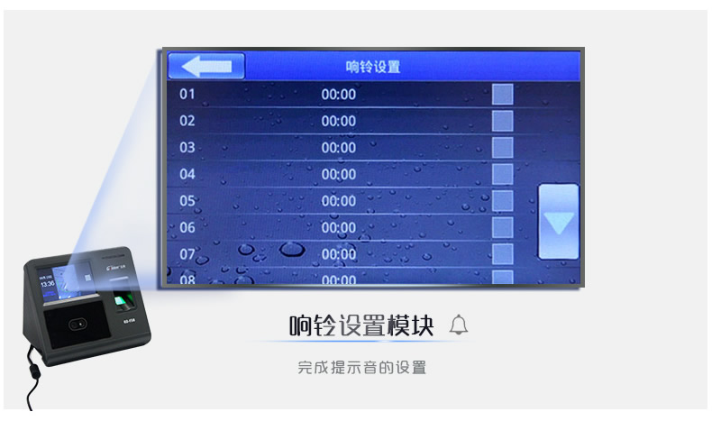 6、请保证指纹考勤机的使用环境,不要将其放置在阴冷、潮湿、高温环境。