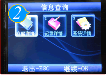 按“MENU”键,进入主菜单页,选择“信息查询”。
