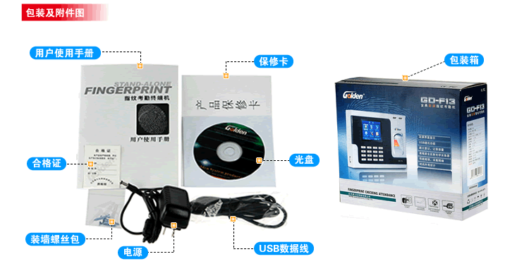 胶锅工作温度: 金典 加工书本厚度(mm): GD-F13 定型槽板厚度(mm): 联网考勤机 对位形式: 光学采集器 机器尺寸(mm): <1秒 工作宽度(mm): 指纹/密码/联网 机器尺寸(mm): 60000条 重量(kg): 3000枚 产品类型: USB接口/U盘读取/TCP/IP网络 其他特性: DC 9V 装订厚度(mm): 简体中文/繁体中文/英文/韩文/日文 装订规格(mm): 支持 净重/毛重(kg): 0.55/1kg 电源: 190*141*44mm 功率(W): 290*245*100mm 铣刀形式: 不支持 机器尺寸(mm): 1:1 包装尺寸(mm): 2.8寸高清显示屏