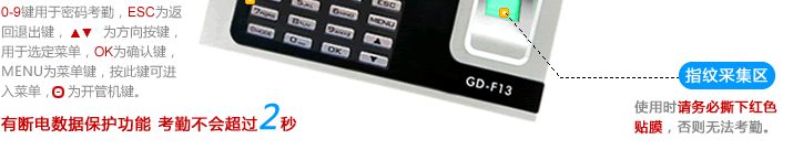 2、使用前请保证手指的清洁,不要沾油污、沾水。手指脏、爆皮、干燥、过凉会出现考勤不识别现象。