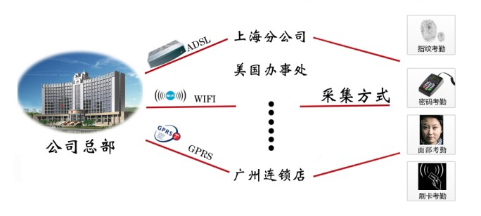 - 10、 集团总部可以对各地考勤机进行监控与管理;