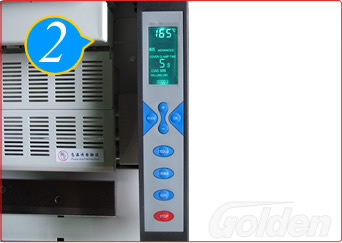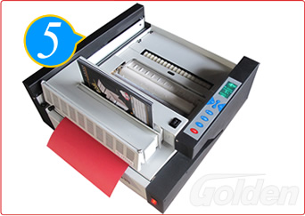 调好夹紧时间和温度,预热开始,预热灯亮,加热开始。启动灯亮,加热完毕,表示可以进行胶装。