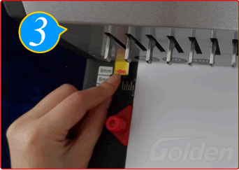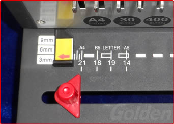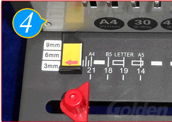 选定边距,即纸张边缘与孔之间的距离,可以有三种规格边距可选( 3MM,6MM,9MM),,注意箭头指定的尺寸 (比如箭头指向9,定位边距就是9MM)