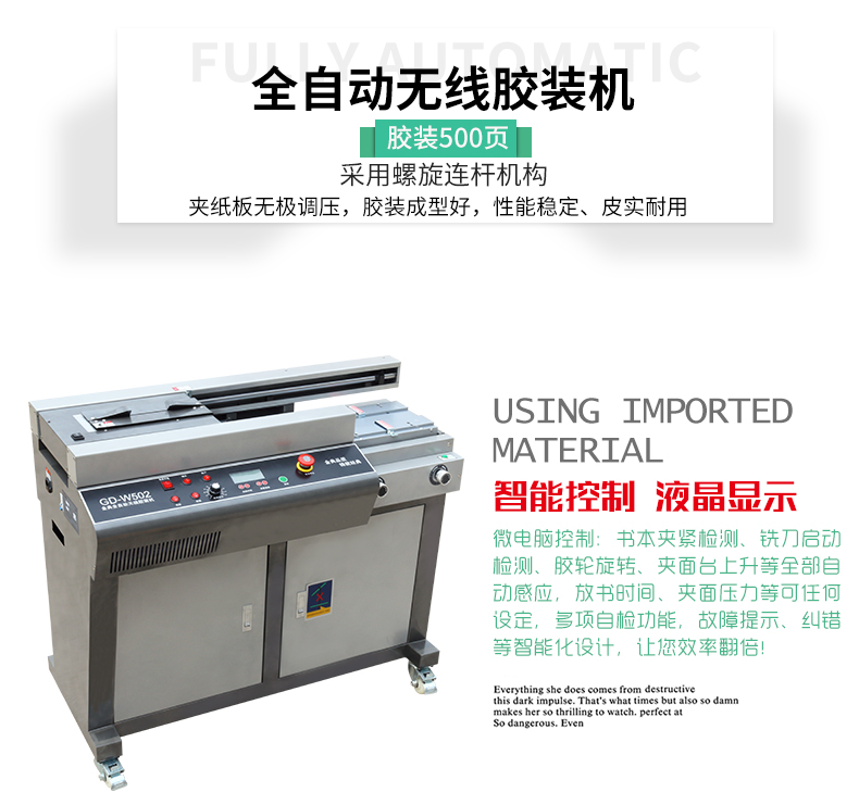 品牌: 150/170kg 指纹容量: 1050×500×930mm ID容量: 1170×610×1090mm 型号: 1300w 产地: 220v±10% 认证方式: 液晶 登记容量: 小铣刀+太阳铣刀 存储容量: <20分钟 显示屏: 300本/小时 通讯方式: 50-400g 附带软件: 50mm(500页) 语言选择: 320mm U盘下载: A4 其他性能: <20分钟 考勤速度: 热熔胶粒 误判率: 落地式胶装机 拒登率: GD-W502 静态电流: 金典